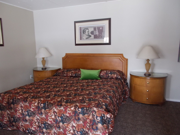 Newly remodeled deluxe King Bed Room nonsmoking features free wireless internet access, flat screen cable TV with extra stations, air conditioning, microwave, and mini-fridge.